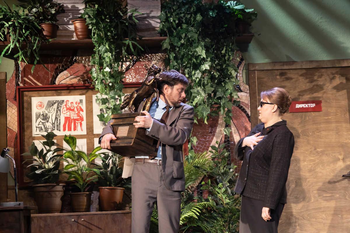 Легендарный «Служебный роман» Эльдара Рязанова был поставлен именно по пьесе «Сослуживцы». Она была написана до выхода фильма на широкие экраны, поэтому между рязановским произведением и постановкой нашего театра есть немалое количество отличий.