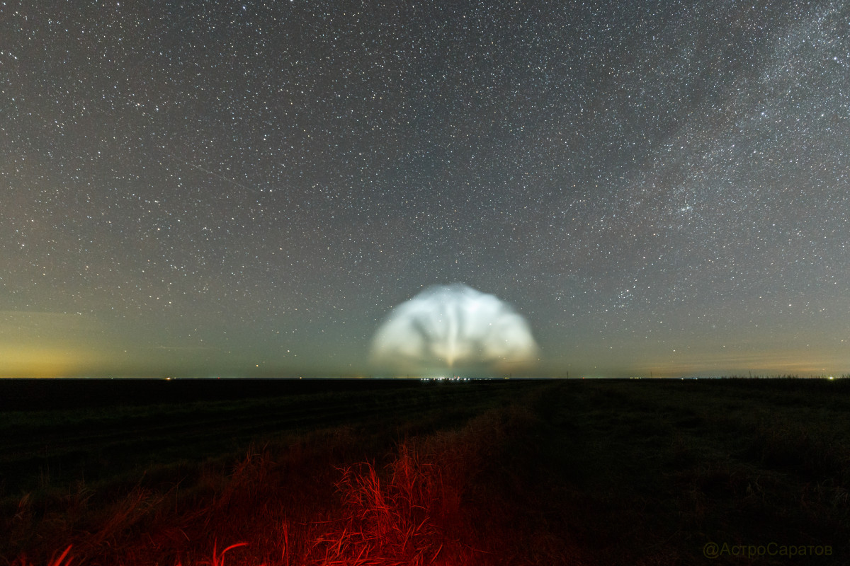 В Ершовском районе саратовский астроном-любитель запечатлел «медузу», возникшую в результате ракетного запуска. По информации канала AstroAlert, запуск был осуществлён ракетой «Союз 2.1б».