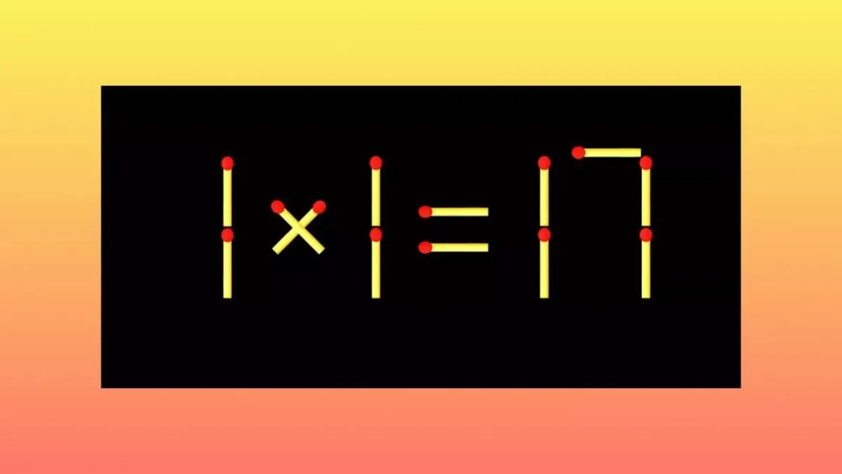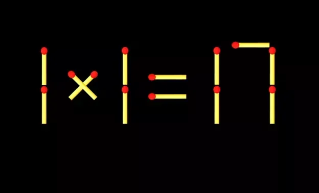 На изображении представлена задача с ошибкой: «1×1=17». Ваша цель — переместить одну спичку и исправить это равенство. Обратите внимание, что это довольно сложная задача, с которой могут не справиться даже самые талантливые «Архимеды»!