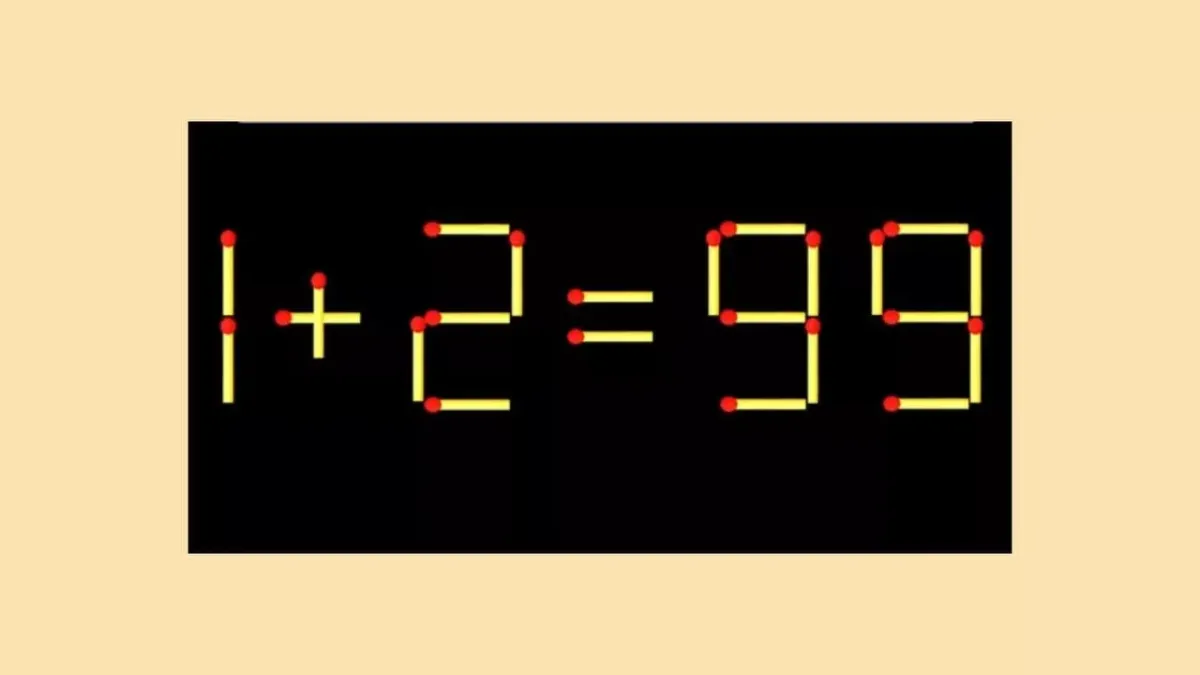 Сегодня мы предлагаем вам решить одну из таких головоломок повышенной сложности. Перед вами задача с примером «1+2=99», который, как вы уже заметили, не является верным. Ваша цель — исправить это равенство, переместив всего одну спичку.