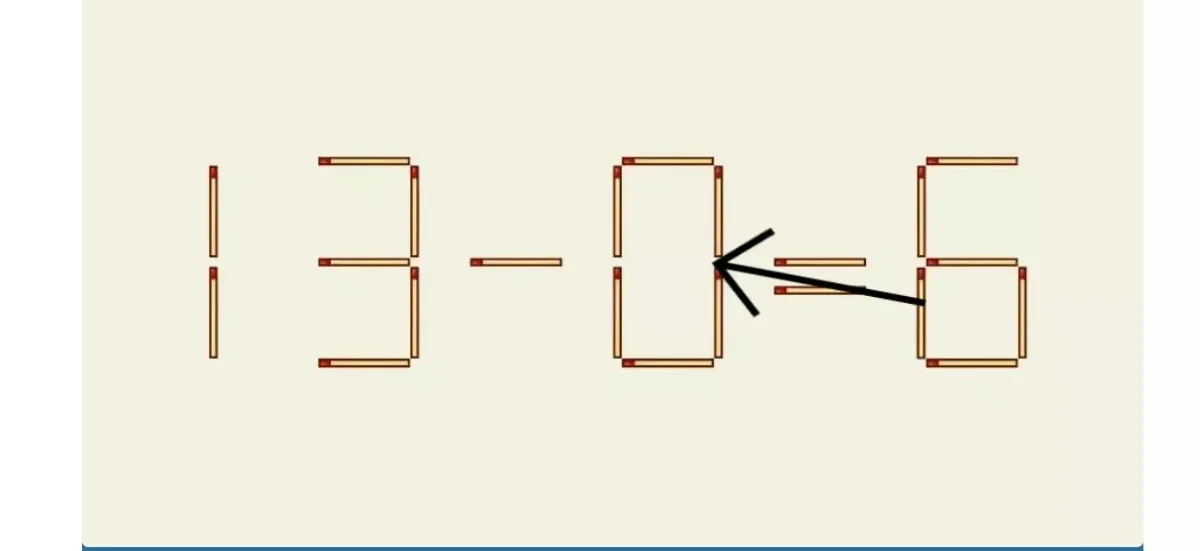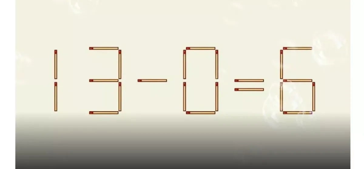 Сегодня мы предлагаем вам интересную задачу, которая позволит проверить вашу логику и IQ. Перед вами равенство 13−0=6, в котором есть ошибка. Ваша задача — исправить её, при этом можно передвинуть только одну спичку. Оптимальное время для решения — 25 секунд. Рекомендуем использовать секундомер, чтобы сосредоточиться исключительно на задаче. Готовы?