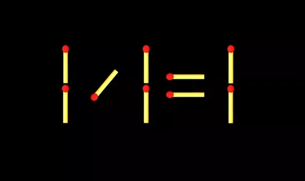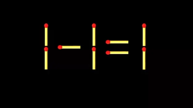 На переднем плане у нас пример, представленный спичками: "1−1=1". Ваша задача — исправить его так, чтобы он стал правильным, при этом можно передвинуть лишь одну спичку. Обратите внимание, что это задание не из простых!