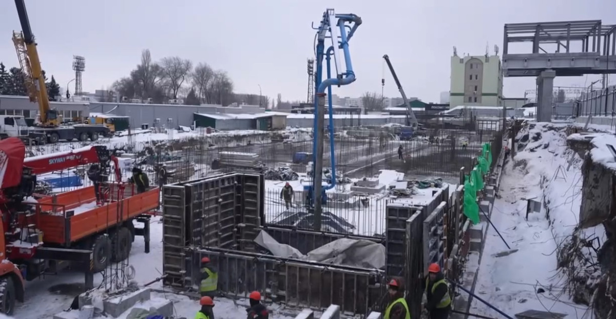 Согласно данным, опубликованным в канале MAX, на строительном объекте завершено устройство подпорных стенок, а также продолжаются работы по бетонированию фундамента и армированию стен и колонн. В настоящее время монтируются опоры и пролетные строения крытого надземного перехода, который соединит привокзальную и завокзальную части, обеспечивая выход на платформы. В вокзале будет установлено 10 эскалаторов и восемь лифтов, в том числе уже начата поставка шести эскалаторов и трех лифтов.