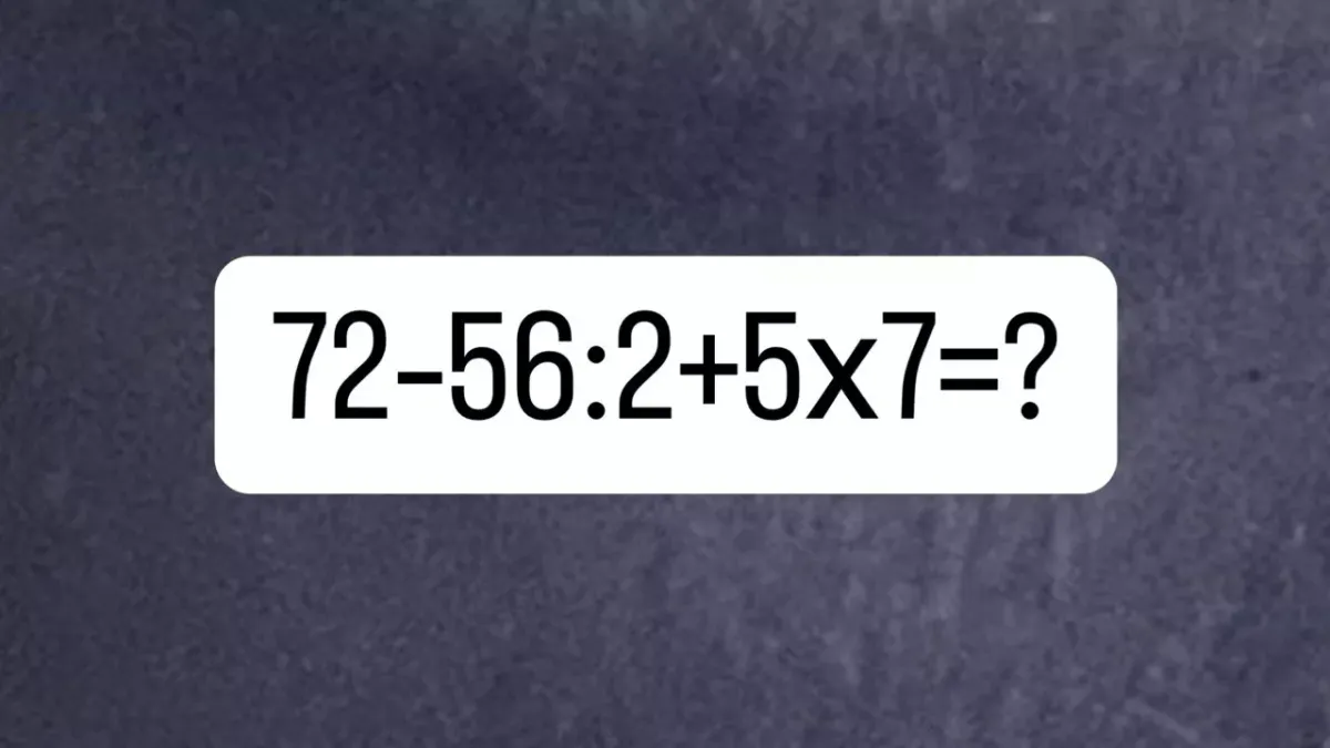 Вот пример для решения: 72−56:2+5×7. Задача состоит в том, чтобы выполнить вычисления в уме, не прибегая к помощи калькулятора.