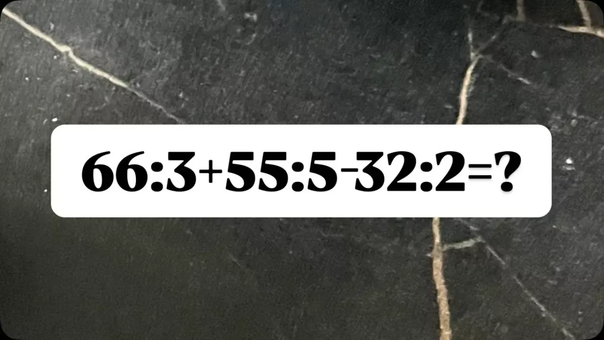 Вот задание: 66:3+55:5−32:2. Постарайтесь решить его без помощи калькулятора или записной книжки. Просто сосредоточьтесь и дайте ответ.