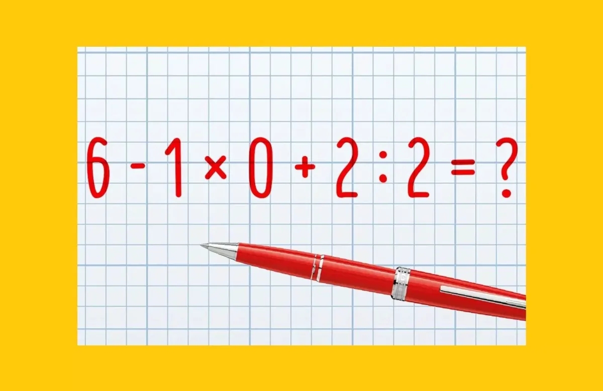 На изображении представлен пример 6−1*0+2:2=?, в котором отсутствует ответ. У вас есть всего 25 секунд, чтобы решить его, так что не теряйте время. Важно не использовать калькулятор или другие гаджеты.