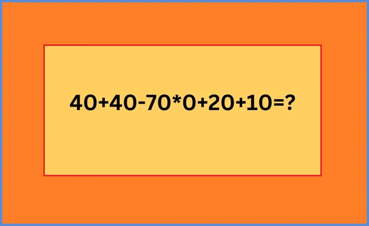 На изображении представлено выражение 40+40−70*0+20+10. Вместо ответа стоит знак вопроса, и ваша задача — найти правильное решение.