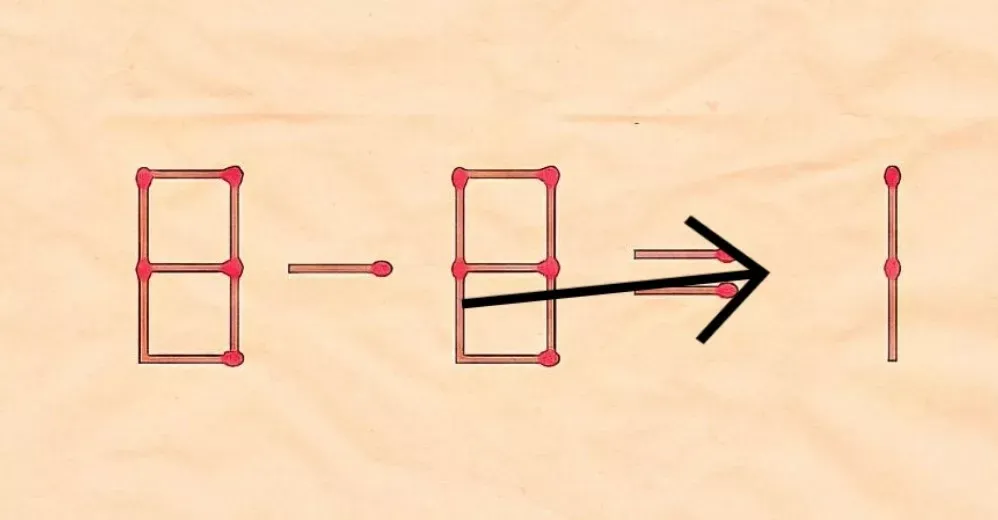 Попробуйте решить равенство 8−8=1. На первый взгляд, это утверждение неверно, и любой школьник это подтвердит. Однако есть одно условие: вы можете переставить только одну спичку. Мы также рекомендуем разгадывать эту головоломку на время, чтобы улучшить свою стрессоустойчивость.