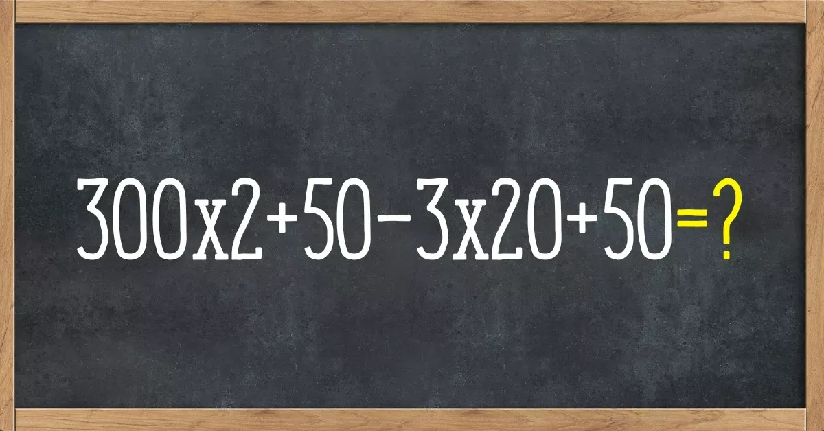 Вот пример: «300×2+50−3×20+50». Если вы готовы, можете начинать. Представьте, что строгий учитель наблюдает за вами, и от вашего ответа зависит оценка, которую вам придется показать дома.