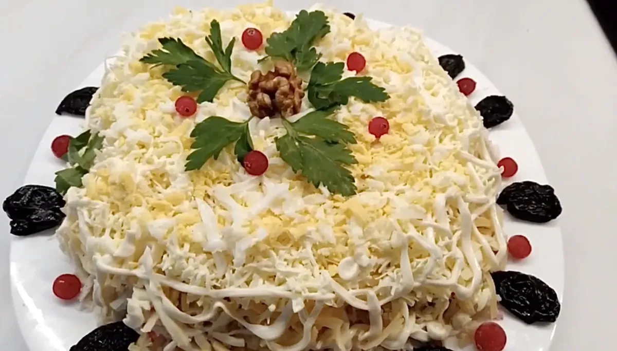 Салат «Черный жемчуг»: эффектное блюдо с крабовыми палочками и черносливом для новогоднего стола