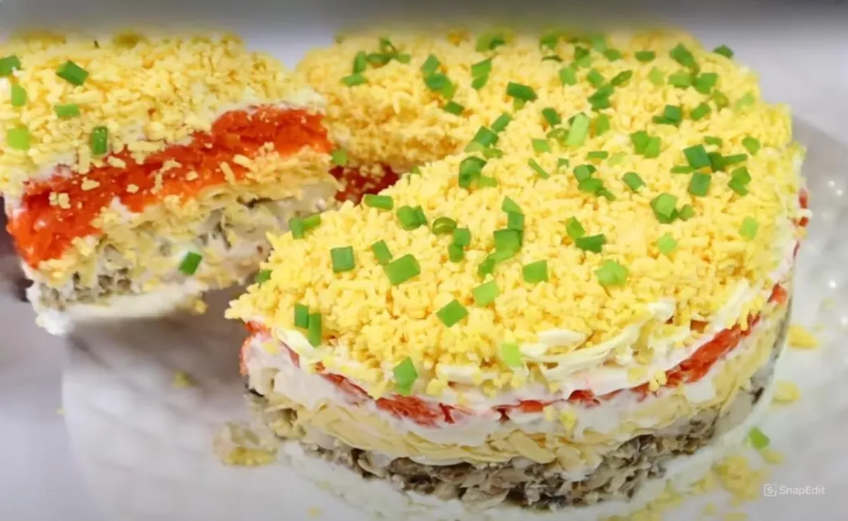 Салат «Мимоза» с крекерами и зелёным луком: новый взгляд на классический рецепт
