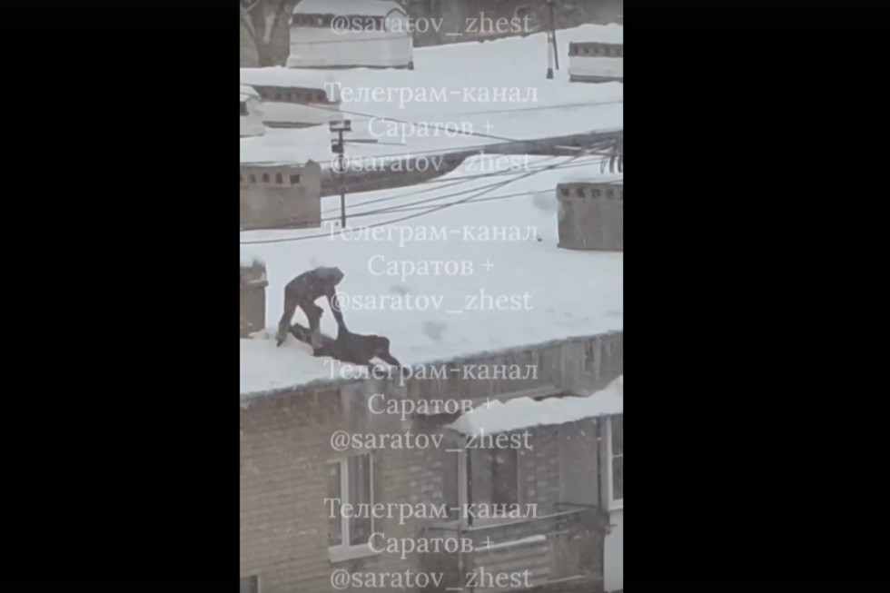 Во Фрунзенском районе Саратова сосульки с жилого дома сбивают экстремальным способом. Соответствующий пост появился в Telegram-канале «Саратов +».
