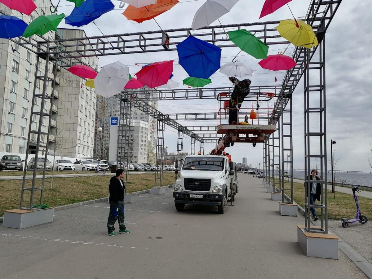 Контракт на изготовление и установку арт-объекта был заключен 1 ноября 2024 года. В декабре конструкцию установили на улице Волжская с целью создания современного общественного пространства и повышения туристической привлекательности. В феврале 2025 года арт-объект был перемещен на набережную, но в марте сильный ветер повредил его элементы. Глава Саратова Михаил Исаев 1 апреля 2025 года поручил замглавы по городскому хозяйству Максиму Сиденко найти более защищенное место для установки. Судьба зонтиков остается неизвестной, несмотря на то что контракт на сайте госзакупок числится исполненным и оплаченным.