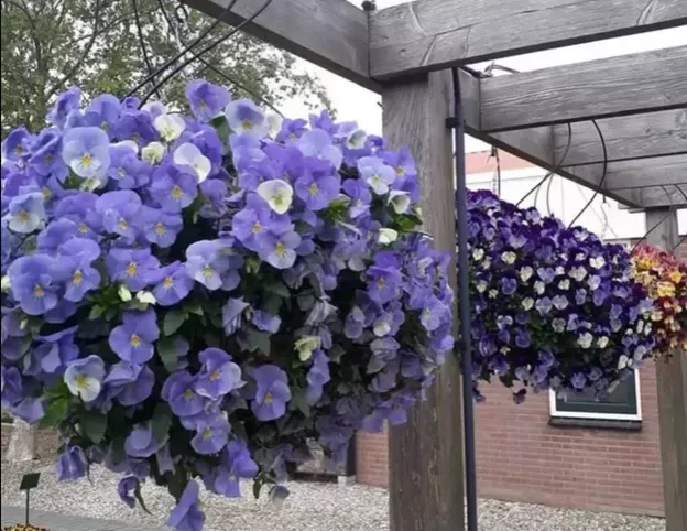 Это растение с побегами, которые красиво свисают из подвесных кашпо, создавая эффектный цветочный шар. Виола принадлежит к семейству фиалковых и радует глаз цветками небольшого размера, около 5 см в диаметре. Цветение продолжается с весны и до первых заморозков.