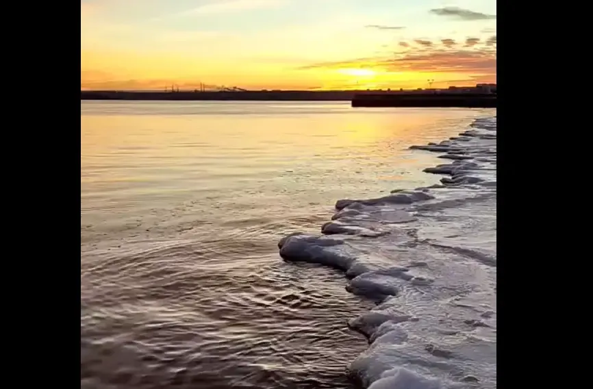 На пляжах Саратова наблюдается необычное природное явление — формирование ледяного вала, который образуется из «шуги». Это скопление мелких ледяных кристаллов, плавающих на поверхности воды. При температуре воздуха ниже нуля и еще не полностью замерзшей воде, на поверхности образуется ледяная каша. В результате прибоя эта каша выносится на берег, где она замерзает, как пояснил заведующий кафедрой метеорологии и климатологии СГУ Максим Червяков.