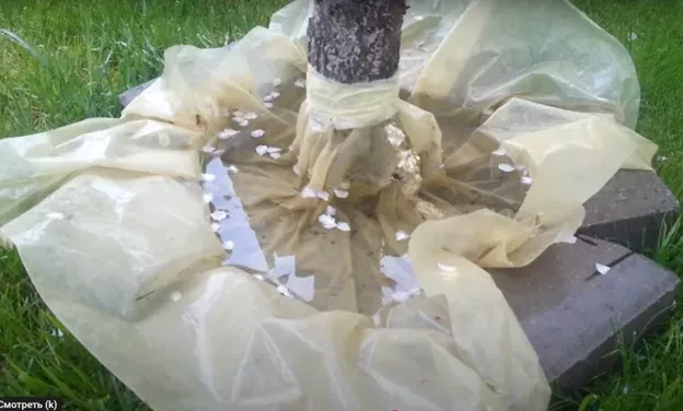 Защитите яблоню от муравьев простым водным барьером из пакета