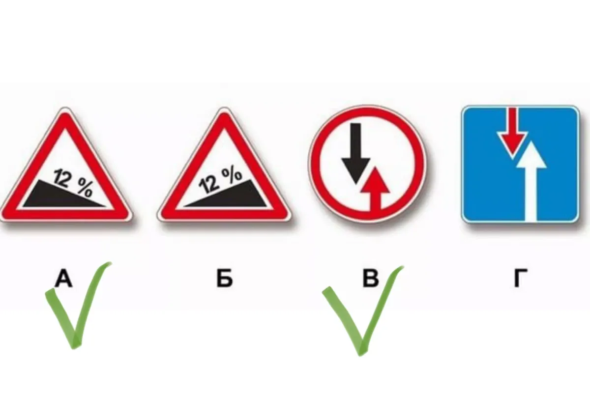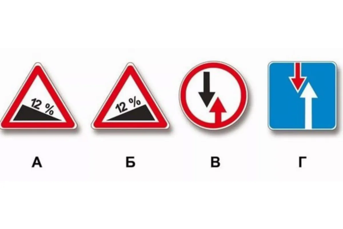 Вопрос: Какой знак обязывает водителя уступить дорогу, если встречный разъезд затруднен? а) только В; б) А и В; в) Б и В; г) Б и Г; д) я на дороге не для того, чтобы ее уступать.